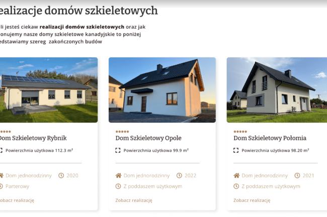 Celem wykonania strony www był nowoczesny design oraz łatwość zapoznania się z ofertą i wykonanie kontaktu przez potencjalnego klienta. W tym celu została zaplanowana ścieżka klienta od rozpoznania projektów domu, przegląd realizacji aż po zostawienie swoich danych kontaktowych.